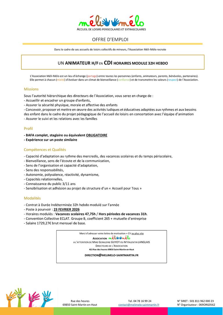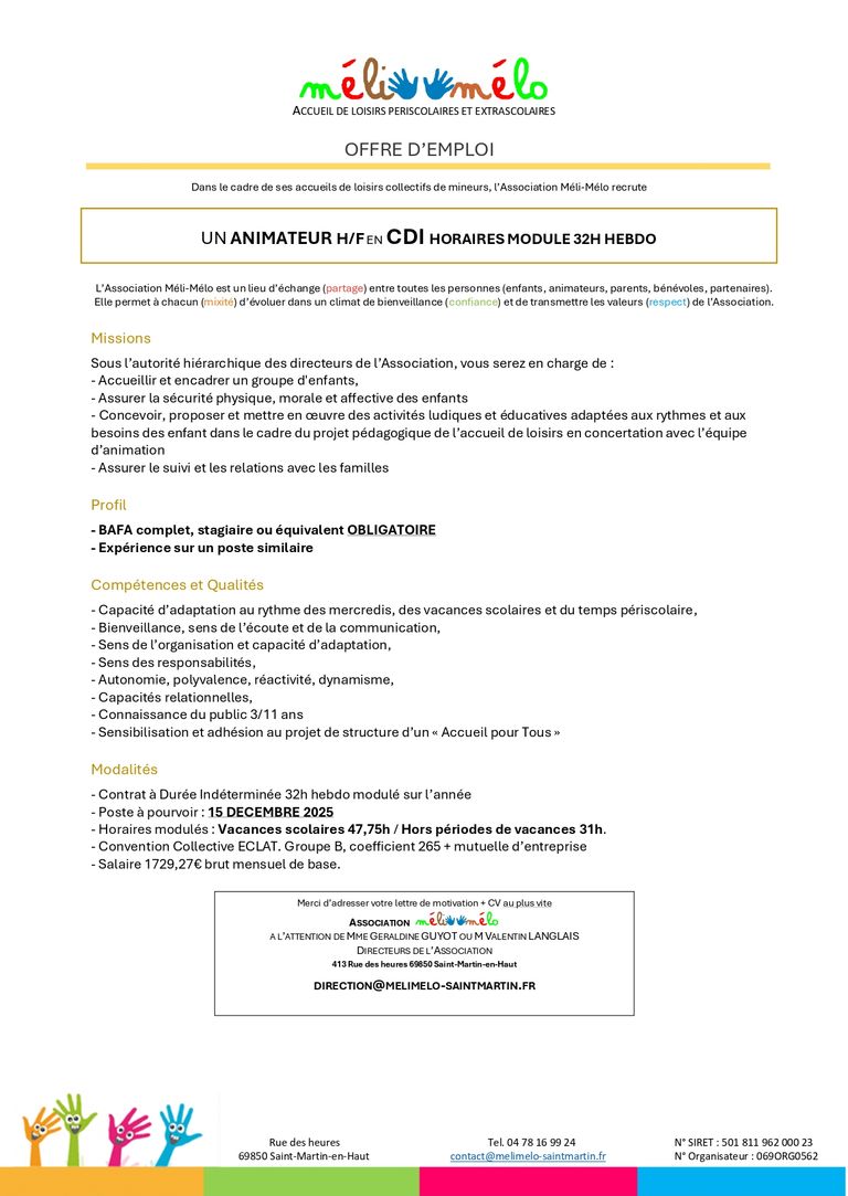 Nous sommes à la recherche d'un Animateur, H/F, CDI, 32h