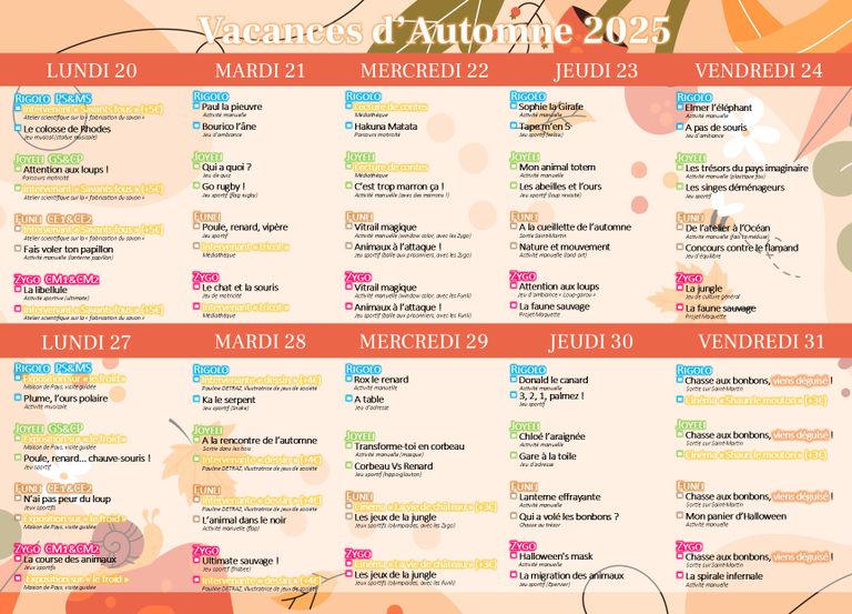 Vacances d'Automne 2025 [du lundi 20 au vendredi 31 octobre]